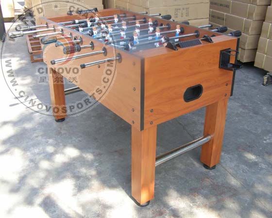 | Introduction: Model No.: HB-5013 Table Size: 1400 x 750 x 880MM Playing Field: 1180 x 670 x 108MM Players: 5:3:2:1 Materials: MDF with PVC Legs: 127mm Square legs with 4PCS of 125mm metal levelers Rods: 15.70mm solid steel rods Accessories: four soccer balls, scorer, bearing Ctn Size: 1410 x 840 x 185MM N.W/G.W: 62/65KGS Q’TY: 180PCS/20ft CTN, 260PCS/40 GP |