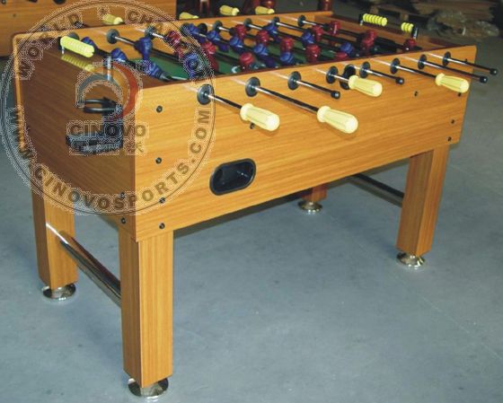 | Introduction: Model No.: HB-5010 Table Size: 1400 x 750 x 880MM Playing Field: 1180 x 670 x 108MM Players: 5:3:2:1 Materials: MDF with PVC Legs: 127mm Square legs with 4PCS of 125mm metal levelers Rods: 15.70mm solid steel rods Accessories: four soccer balls, scorer, bearing Ctn Size: 1410 x 840 x 185MM N.W/G.W: 62/65KGS Q’TY: 180PCS/20ft CTN, 260PCS/40 GP |