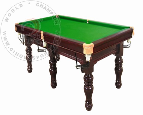 | Introduction: Model No.: H-617 Table Size: 2960*1720*820MM Playing Field: 2540*1270MM Materials: Solid Wood with Natural Slate Includes: Table Frames, Rails, Natural Slate (95''x51''x1''), Table Cloth (65% wool & 35% nylon) Real Leather Pokets. Accessories: 2pcs of Cues, 1 set of billiard ball, rail brush, triangle rack, chalks and etc N.W/G.W: 560kgs/555kgs Packing Numbeer : 35sets/20ft CTN, 56sets/40' GP |