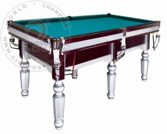 | Introduction: Model No.: H-613A Table Size: 2960*1720*820MM Playing Field: 2540*1270MM Materials: Solid Wood with Natural Slate Includes: Table Frames, Rails, Natural Slate (95''x51''x1''), Table Cloth (65% wool & 35% nylon) Real Leather Pokets. Accessories: 2pcs of Cues, 1 set of billiard ball, rail brush, triangle rack, chalks and etc N.W/G.W: 560kgs/555kgs Packing Numbeer : 35sets/20ft CTN, 56sets/40' GP |