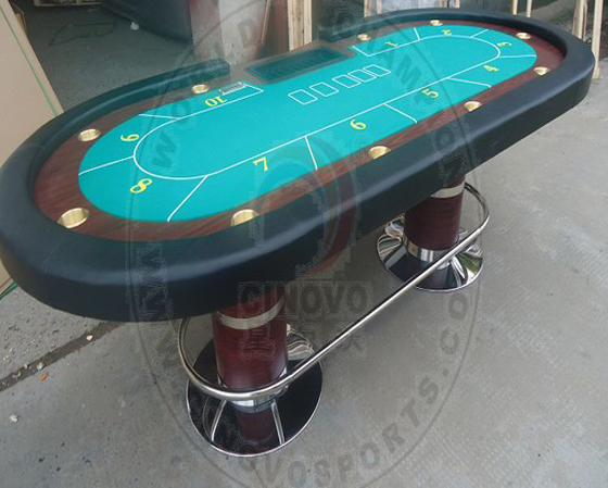 | Introduction: Model No.: PKT-02 1:Size: 96*42*32 inch 2.Material:MDF & EVA 3. It is for 6-10players 4. Customize logos can be printed on table 5.Poker table with folding leg 6.By Green velveteen and plastic cup holder 7.Table top can be printed the silk-screenprinting or Heat Transfer printing (good for casino) 8.Inner packing: 1 pc/polybag, inner box,carton 9.Outer packing: 1 pc/carton 10.Carton dimensions:244*108*10CM,75*75*12CM 11.N. W/G. W: 100/105KG |