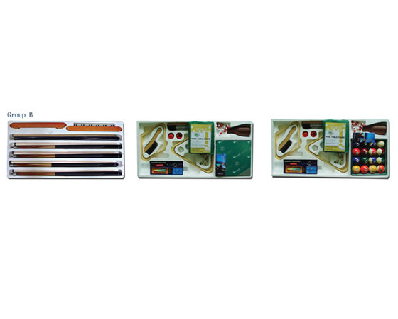 | Introduction: 1. one set of 2 1/4'' balls 2. 1pcs of wooden triangle racke 3. 1pc of wooden pool ball rack 4. 1pc of brush 5. 1pc of rail brush 6. 4pcs of cues 7. 1pc of cross stand 8. one dozen of chalk 9. 1pc of special glue 10. 10pcs of cue tips 11. 1pc of ball tray |