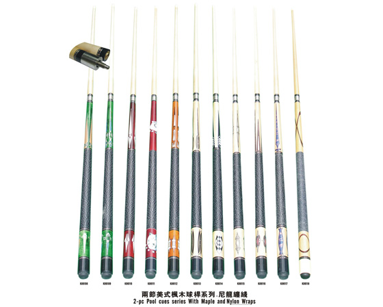 Two-pc Pool Cues Series with Maple and Nylon Wraps