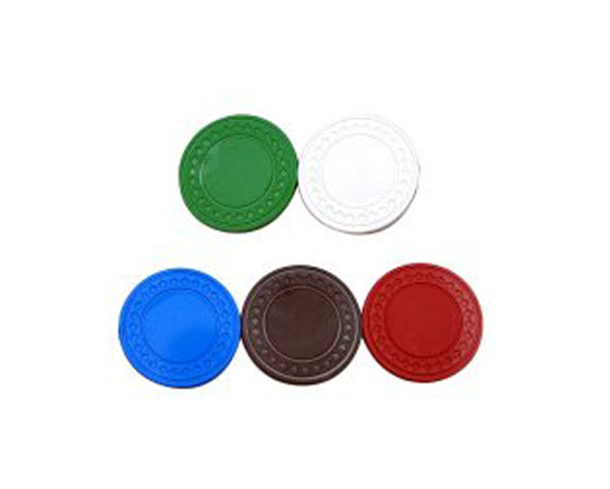 | Introduction: 2 Color Casino Chips Made of ABS clay composite (11.5g contain the slice of iron) Weight: 11.5g Thickness: 3.4mm Diameter: 40mm Designs: dice, suited, diamond Colors: red, green, blue, white, black |
